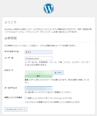 ※表示されない場合はWordPressファイルのアップロードミスでファイルが一部欠落しているなどが考えられますので再度アップロードしなおしてください。