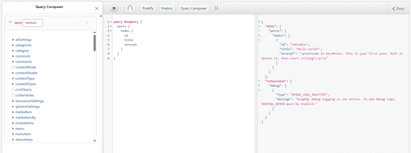 WordPressサイドバーの「GraphQL」⇒「GraphQL IDE」から開きます。