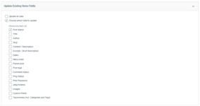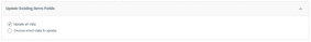 ステップ5の「Update Existing items Fields」では「Update all data」を選択しておきましょう。