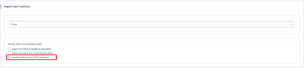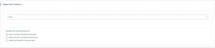 ステップ2のImport each record asでは一番上の「Import new items & Update Existing items」、もしくは「Import new items only & Skip Existing items」のどちらかを選択すると良いでしょう。