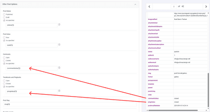「Other Post Options」では、投稿ステータスや投稿日以外にも、コメントやピンバックをを受け入れるかどうかの設定も引き継ぐことができます。