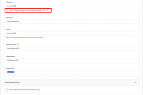 ※Passwordに関しては「This is hashed password from another WordPress site」にチェックを入れておいてください。